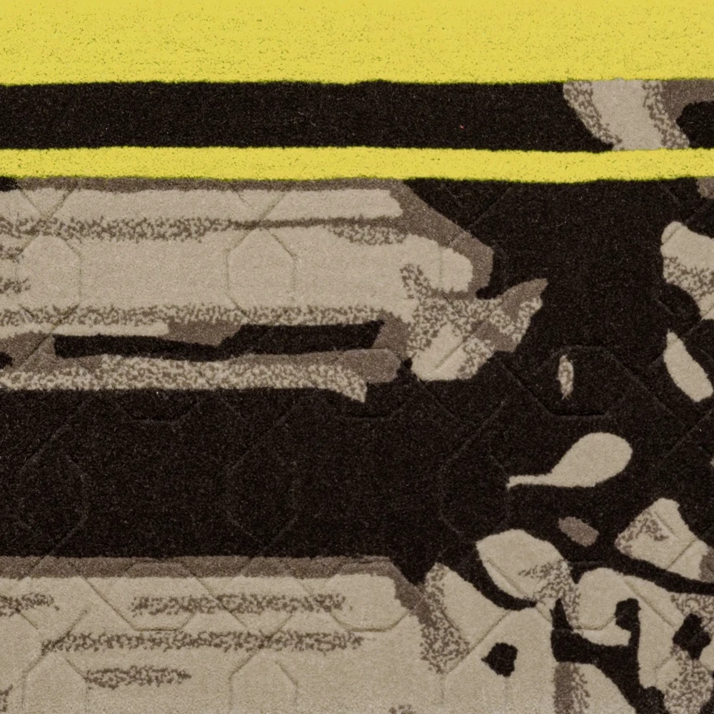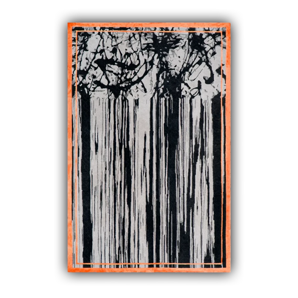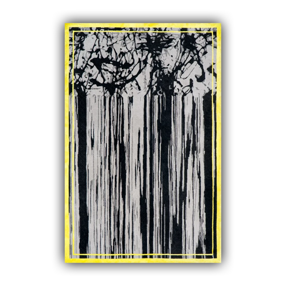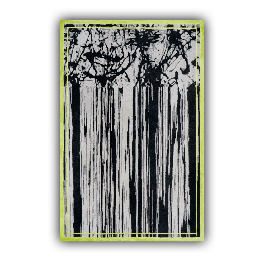 The neon-coloured border starkly contrasts the black and white shades and arrests your attention. It looks like a picture frame and elevates the flowing design to a work of art.