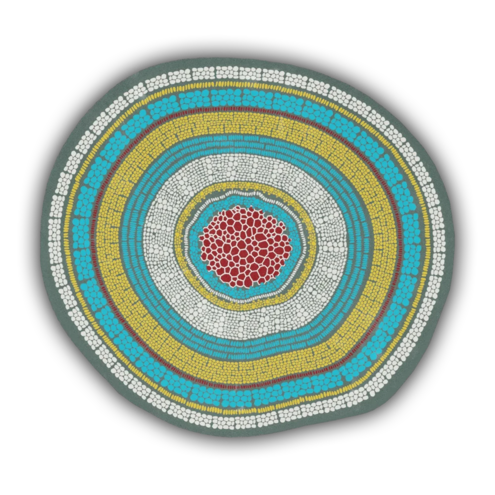 Nature creates incredible works of art that fascinate and captivate us with their beauty and intricacy. “Microscopy” was inspired by the cross-section of a plant stem. The strong impression of depth makes the individual organic shapes look very sculptural.